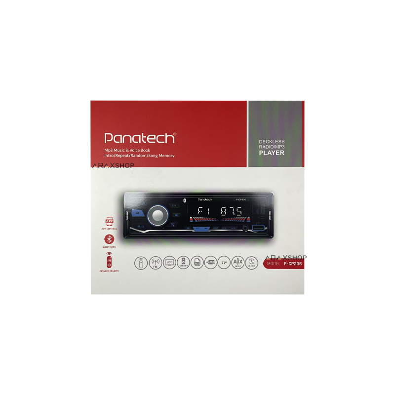 پخش کننده خودرو Panatech مدل P-CP206 پنل ثابت میباشد. این پنل دارای دکمههای کنترلی و ریموت کنترل جداگانه است. دکمههای کنترلی در سمت راست پنل برای تغییر آهنگ و دکمههای فیزیکی در سمت چپ پنل برای تنظیم ولوم، تبدیل پخش موسیقی به رادیو FM و سایر عملیات مرتبط با پخش صدا به کار میروند. همچنین، پنل دارای نمایشگر LED است که اطلاعاتی درباره موسیقی در حال پخش، کانال رادیویی و دیگر ویژگیها را نمایش میدهد. اتصال از طریق پورت USB و شیار کارت حافظه نیز از راههای دیگری برای پخش صدا فراهم میآید.