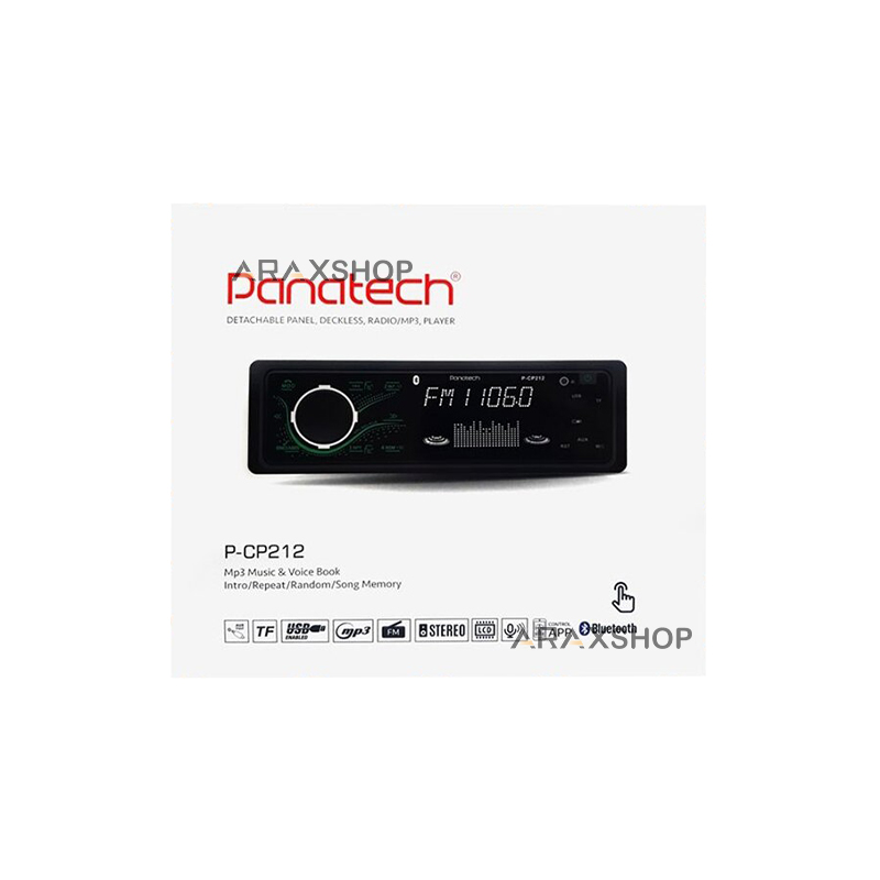 پخش کننده خودرو Panatech مدل P-CP212 پنل ثابت میباشد. این پنل دارای دکمههای کنترلی و ریموت کنترل جداگانه است. دکمههای کنترلی در سمت راست پنل برای تغییر آهنگ و دکمههای فیزیکی در سمت چپ پنل برای تنظیم ولوم، تبدیل پخش موسیقی به رادیو FM و سایر عملیات مرتبط با پخش صدا به کار میروند. همچنین، پنل دارای نمایشگر LED است که اطلاعاتی درباره موسیقی در حال پخش، کانال رادیویی و دیگر ویژگیها را نمایش میدهد. اتصال از طریق پورت USB و شیار کارت حافظه نیز از راههای دیگری برای پخش صدا فراهم میآید.